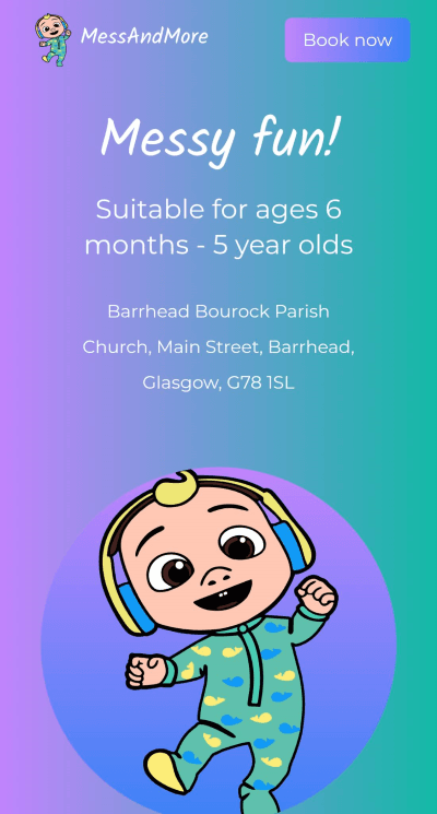 Mess and more was made made for a client that is doing baby and toddler morning classes. It is made with NextJS, Tailwind and integrates their BookingWhen form.
